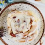 While the cinnamon rolls bake, I like to prepare the icing. That way when the rolls are done, I can spread the icing on them when they are still semi-warm. I prefer spreading the icing on them when they are still slightly warm so the icing can semi-melt into the dough. Mmm, I’m hungry just thinking about it! Now all that’s left to do is grab one and enjoy