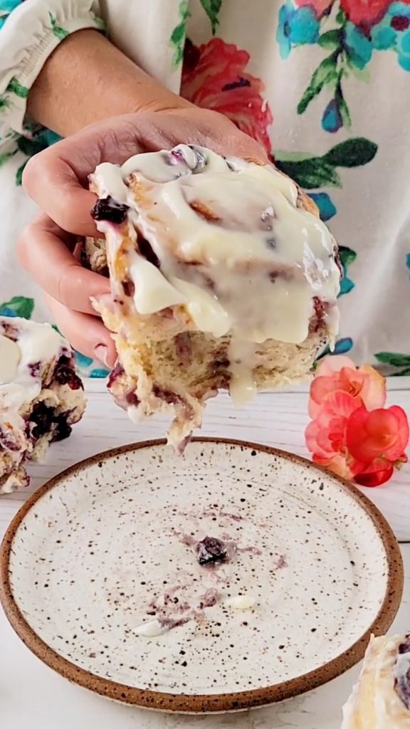 If you try this blueberry cinnamon roll recipe, rate it below and leave a comment. I love to hear your feedback. It helps me improve my recipes. Also, make sure you find me on instagram where you can see the full baking video and more fun behind the scenes.