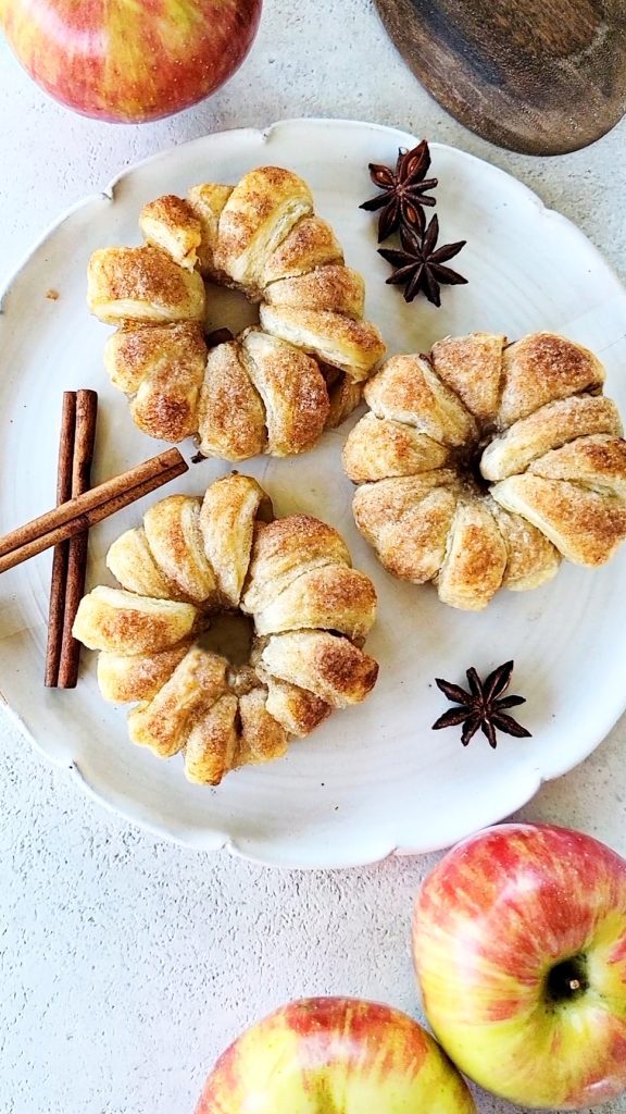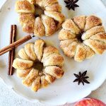 Flaky, buttery puff pastry dough is wrapped around an apple that is sprinkled in cinnamon sugar. The buns are baked until golden and crisp and the apple is tender on the inside. Dessert doesn’t get much easier than this.