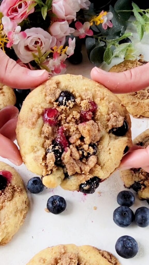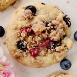 When blueberry muffins meet a cookie, you get these Blueberry Muffin Cookies. These cookies are soft, thick and loaded with blueberries. The streusel on top adds the perfect contrasting texture as well as flavor to these cookies. No dough chilling required for these. They take only 10 minutes to mix together and 10 minutes to bake.