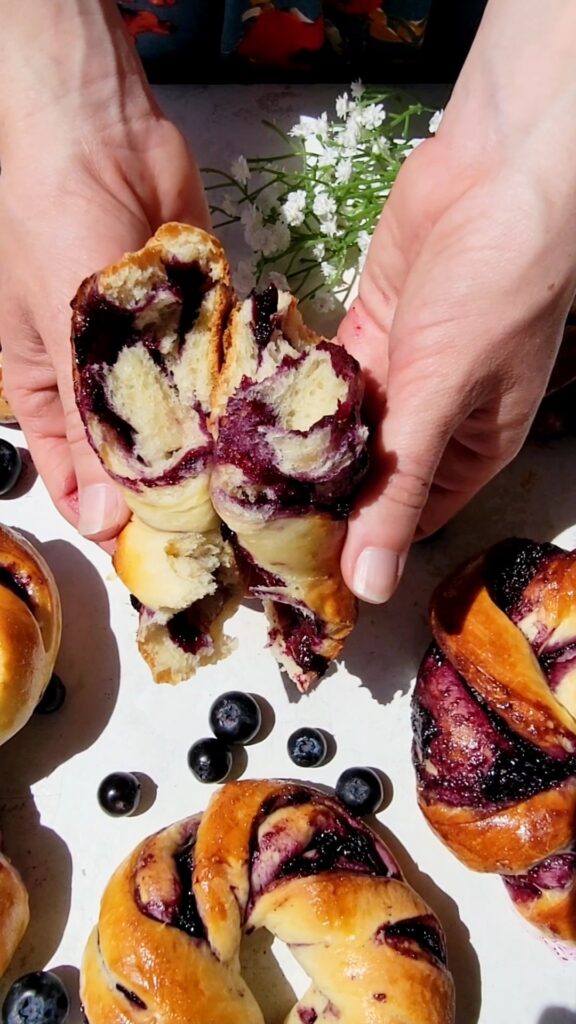 I have made this recipe a few times now. The first time I followed the directions precisely, since then I’ve adjusted it slightly where needed for my preference when I’m not making the berry rolls. It’s so light and fluffy and I love that it doesn’t take hours to rise. We now use the bread part of the recipe for all kinds of things at home. The jam came out lovely and spread on the dough smoothly, making the twists was quite messy, but that was part of the fun!