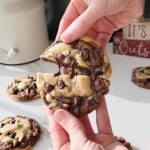 I made Brookies a few months ago, during the warm summer months in bar form. But, recently I was craving a handheld cookie. And there’s just something about a good cookie. While I love eating bar dessert recipes, I can never turn down a good cookie.