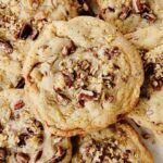These Butter Pecan Cookies are crisp around the edges and chewy in the middle. They’re made with brown sugar, toasted buttered pecans and are insanely delicious. They only take 10 minutes to bake and require no dough chill time.