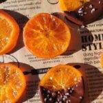 6. If desired, melt some dark chocolate in a double boiler, or in the microwave in 20 second increments, stirring in between each. Dip half the candied orange slices in the dark chocolate. Set on a piece of parchment paper. Sprinkle sea salt over the dark chocolate and allow chocolate to harden.