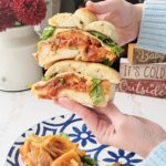 These Chicken Parmesan Sandwiches are made with ultra crispy chicken thighs, fried until golden brown, smothered in marinara sauce, melted mozzarella cheese and a handful of fresh basil, then placed on top of a giant soft garlic knot bun. The key to the crispy chicken lies in the batter. The chicken is coated in a beer batter, using Troegs American Lager, which adds delicious notes of toasted malt, and crisp refreshing notes. The beer helps to create an ultra light, airy structure, thanks to the carbonation, which results in a “shatteringly” crisp crust. The acidic nature from the beer also helps from keeping too much gluten development from forming, lending to a light and crunchy crust, rather than chewy. I paired these sandwiches with beer battered french fries, which offer an extra crunchy, savory taste.