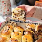 Now, the chocolate chip rolls are ready to bake! Brush the dough balls with a beaten egg. This will give the top of the dough a beautiful golden brown color and shine once baked. My rolls took right around 17 minutes to bake, but ovens can vary. I recommend checking the rolls around 15 minutes. The rolls are done when the tops are a nice golden brown color.