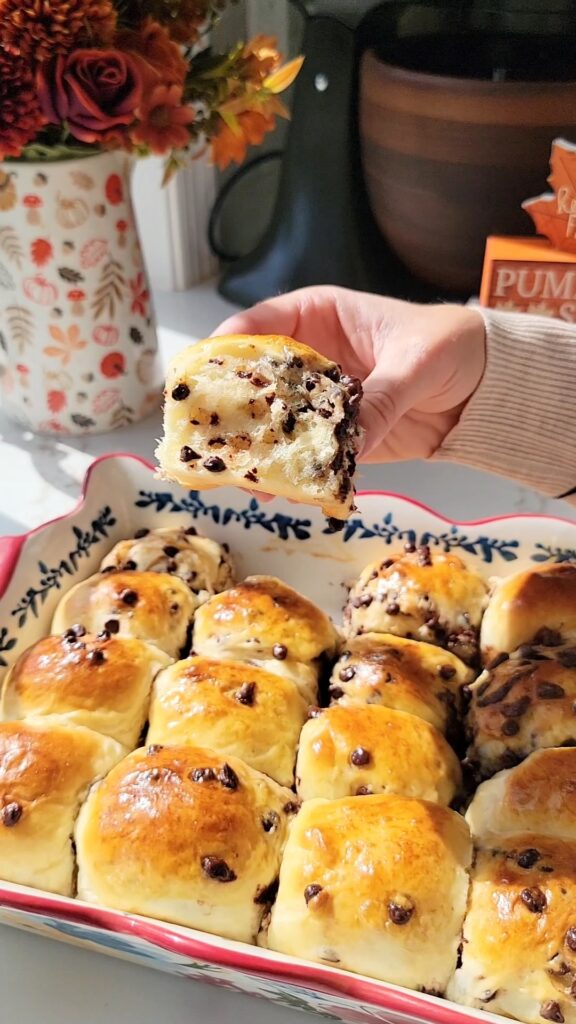 - Plenty of chocolate chips – these rolls use mini chocolate chips which allows for the chocolate to be more dispersed in the rolls.