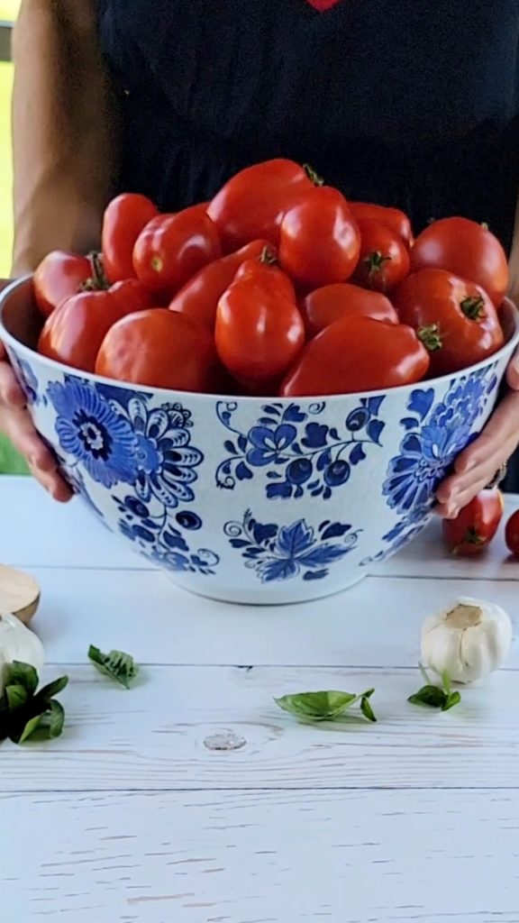 - 9 pounds (I recommend saucing tomatoes like Roma and San Marzano, but you can use whatever you have)