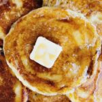 3. Melt 1 tablespoon butter in skillet set over medium-low heat. Add a drizzle of vegetable oil. Scoop batter by 3-4 tablespoon measurements. Once bubbles appear on surface and pancake is golden on underside, flip with spatula. Cook until golden brown. Repeat with remaining pancakes. You may need to add more butter in between pancakes to prevent pancakes from sticking.