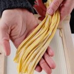 Using a bench knife, a knife, or a pizza wheel, cut the noodles into desired thickness. Repeat with remaining dough.