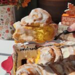 The mornings are starting to have a bit of crisp cool air in the morning and it is making me crave allllll the cozy pumpkin treats, especially these homemade pumpkin cinnamon rolls.