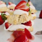 What’s better than fresh strawberries, whipped cream and a delicious tender, buttery biscuit? These Strawberry Shortcakes remind me so much of my childhood. Except, my mom would buy these storebought shortcake dessert cups. They were almost like a cake, but were small like the size of the biscuits. My mom would toss fresh strawberries with sugar. More technically speaking, she macerated the strawberries, which simply meant the hygroscopic property of the sugar would draw the moisture and juice out of the strawberries to create a delicious juicy syrup. She would serve these juicy strawberries on top of the shortcake dessert cups, then add milk to our bowls. I’m not sure where the milk idea came from, but I loved it growing up.