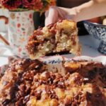 The fall season is my favorite baking season, by far! I just love all of the cozy bakes and especially the way my house smells after baking. This Pecan Pie Focaccia is everything I want in a fall focaccia. It has the warm cozy flavors of cinnamon and brown sugar, then the focaccia is topped with a gooey, rich pecan pie topping.