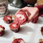 These muffins would make a great breakfast or brunch treat around the Christmas/holiday season, but they would also be great for Valentine’s day, or honestly, just any time you are craving red velvet.