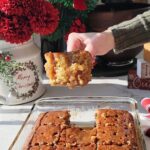 8. For the 8×8 cake, poke holes in the top of the cake. Pour half the sauce over the cake and allow to soak in for a few minutes. Slice and serve with extra toffee sauce. Sprinkle chopped pecans over top, if desired.